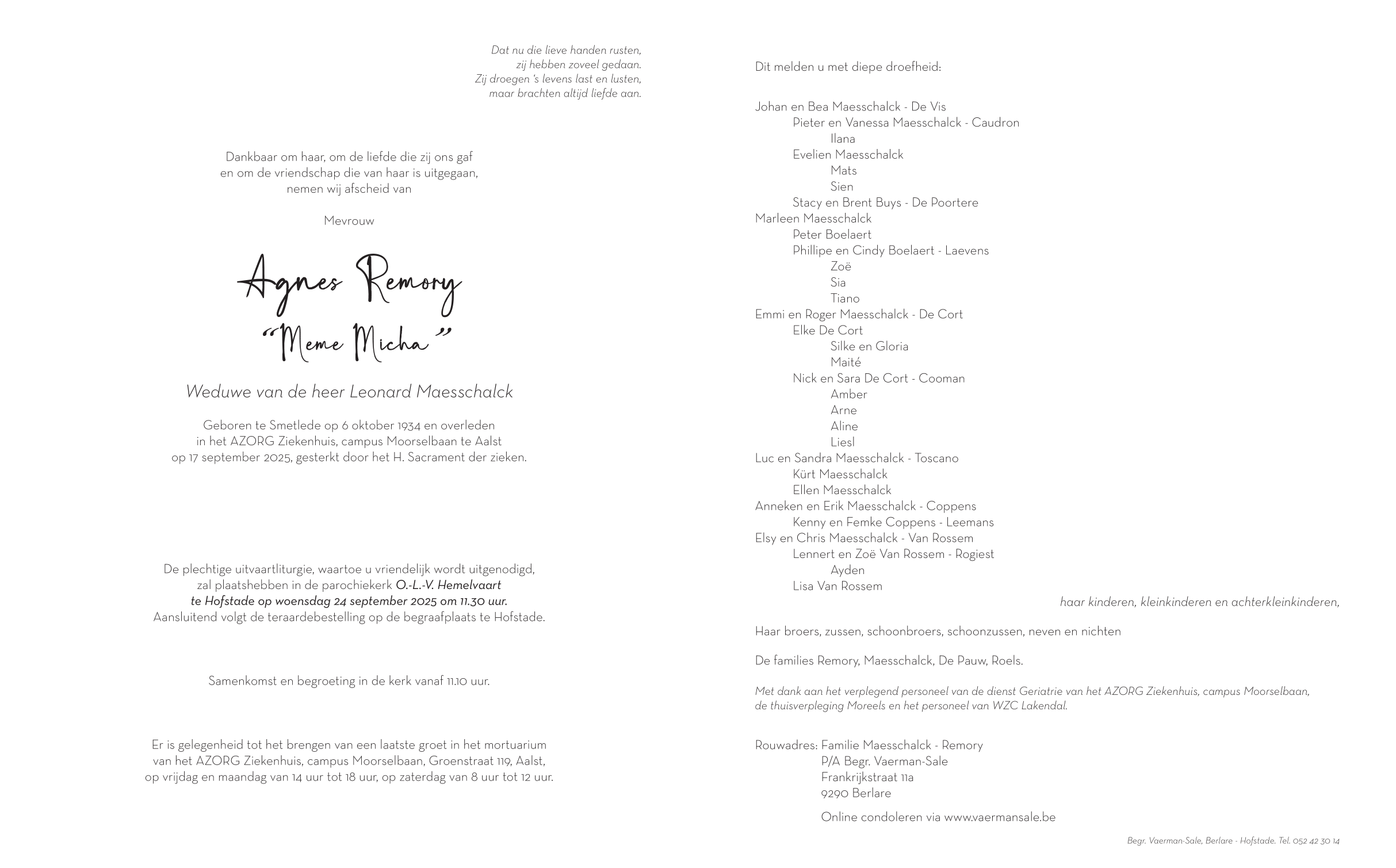 Overleden te Aalst (9300) op woensdag 17 september 2025 op 90-jarige leeftijd