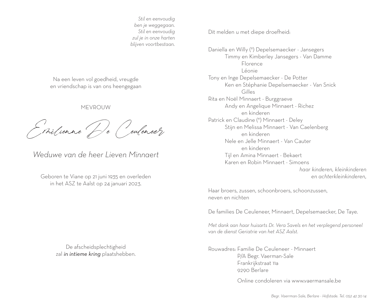Overleden te Aalst (9300) op dinsdag 24 januari 2023 op 87-jarige leeftijd