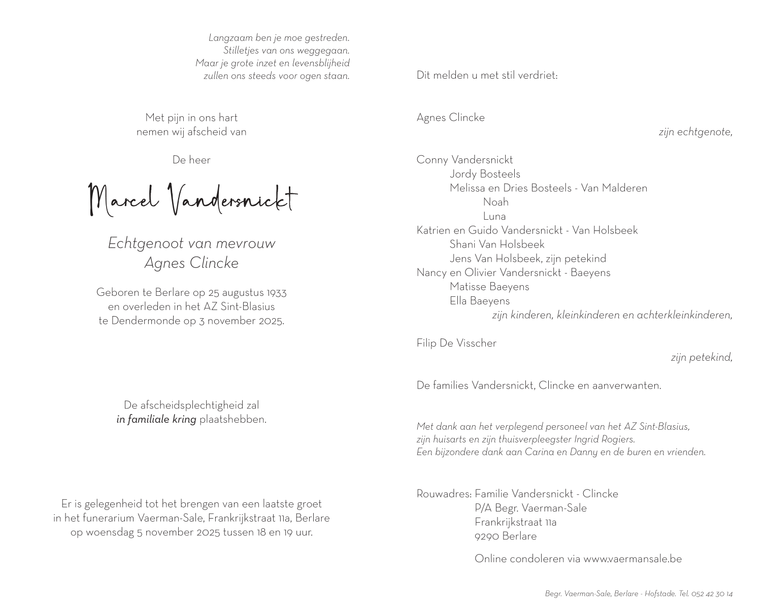 Overleden te Dendermonde (9200) op maandag 3 november 2025 op 92-jarige leeftijd