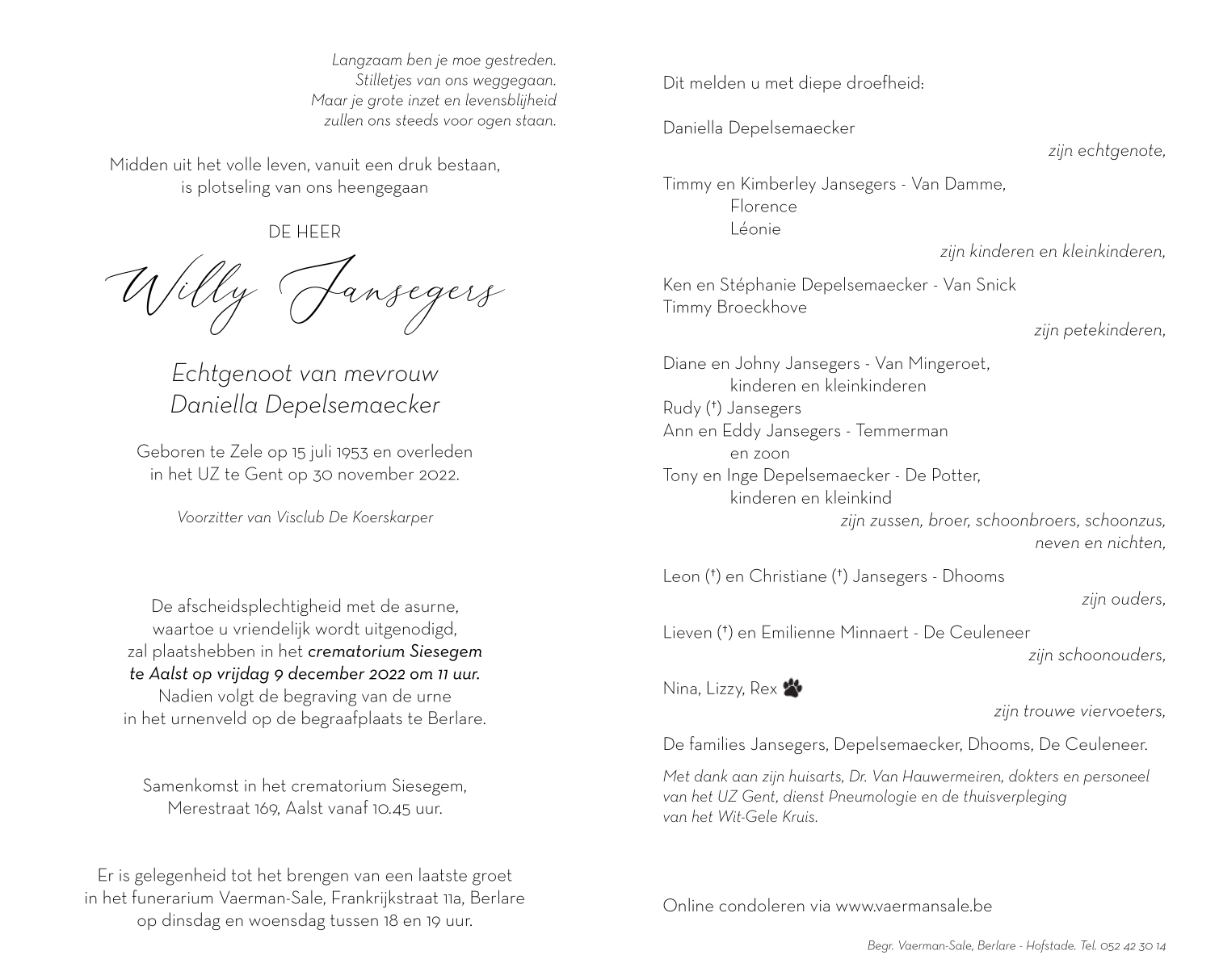 Echtgenoot van Mevrouw Daniella Depelsemaecker