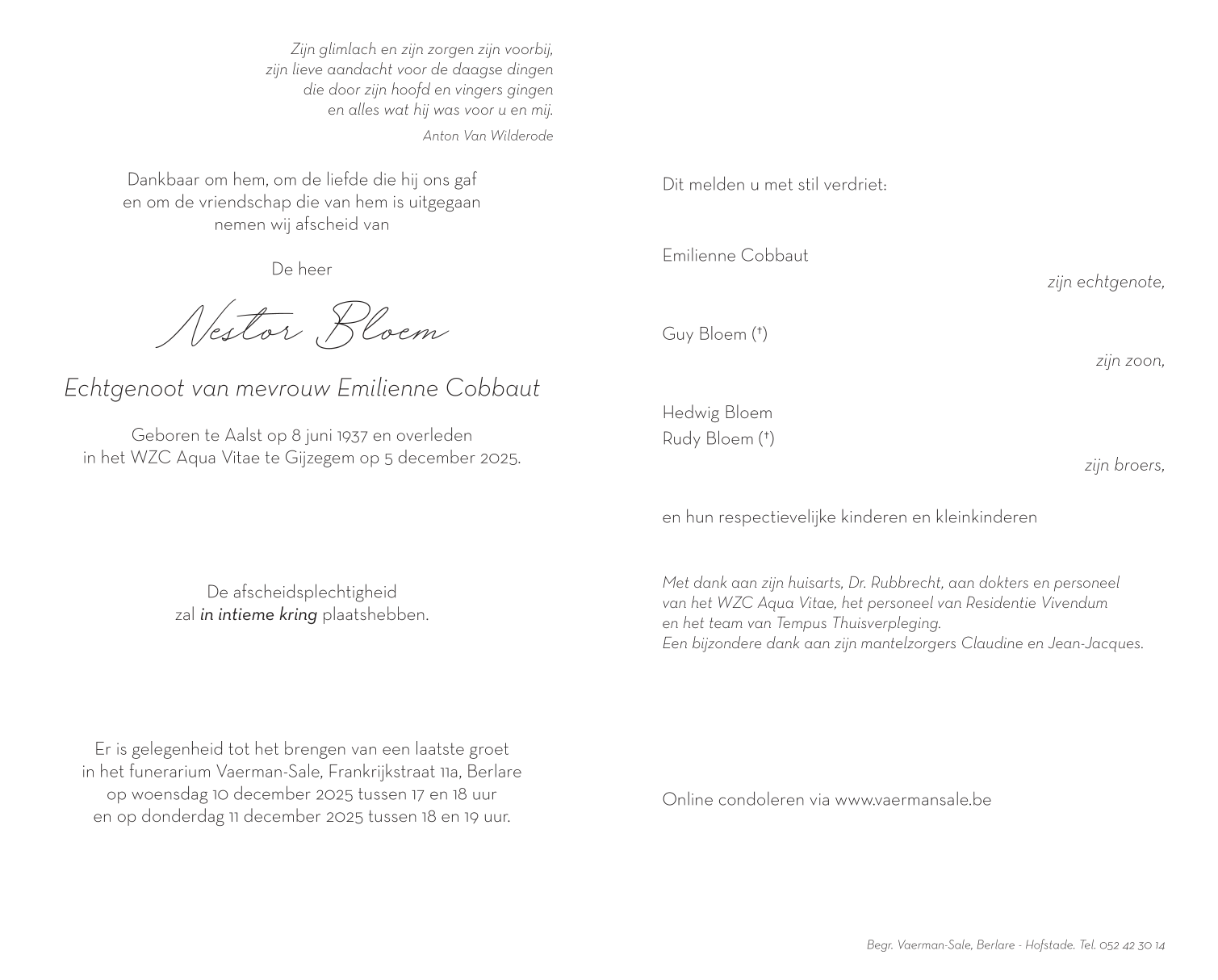 Echtgenoot van Mevrouw Emilienne Cobbaut