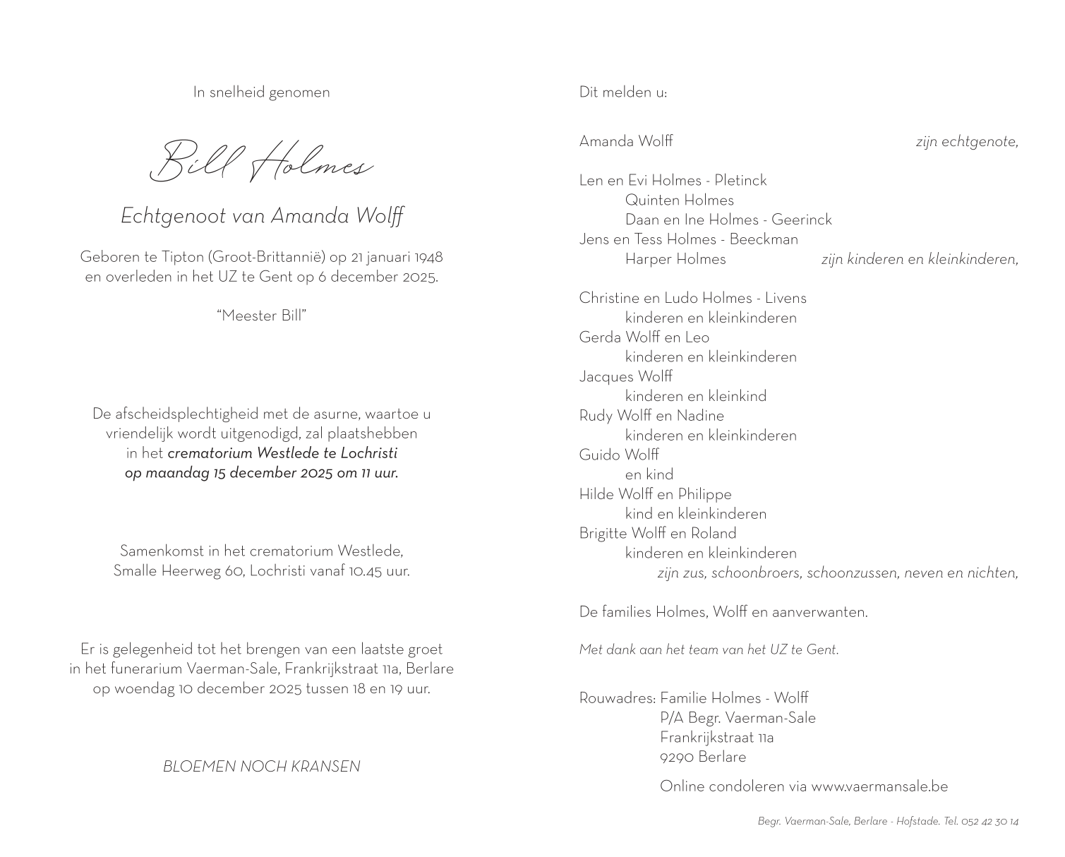 Overleden te Gent (9000) op zaterdag 6 december 2025 op 77-jarige leeftijd