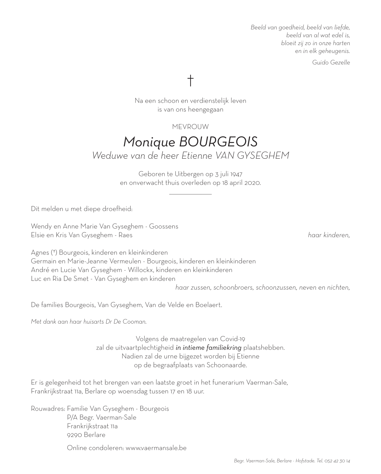 Overleden te Schoonaarde (9200) op zaterdag 18 april 2020 op 72-jarige leeftijd